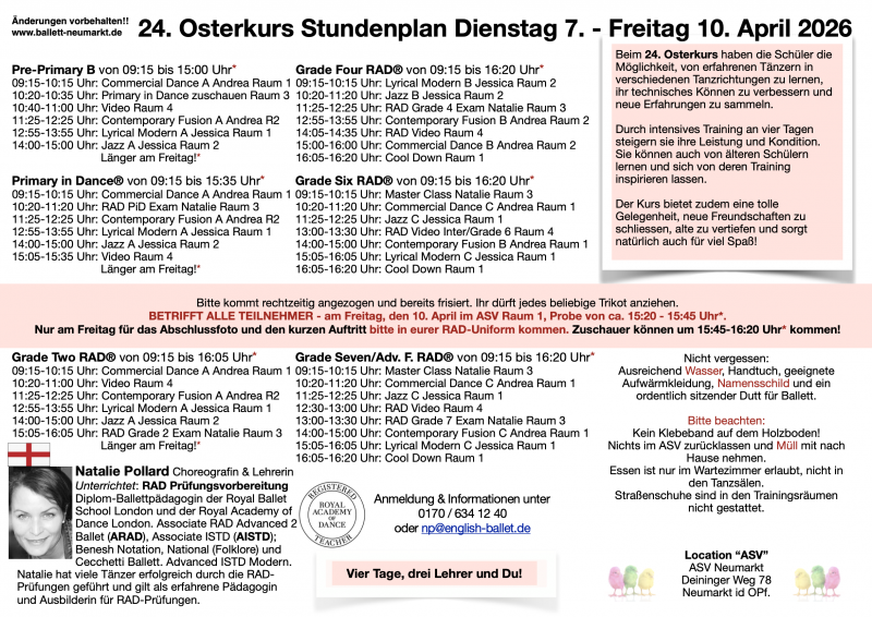 Ballet Calendar / Stundenplan / KiBü / Osterkurs