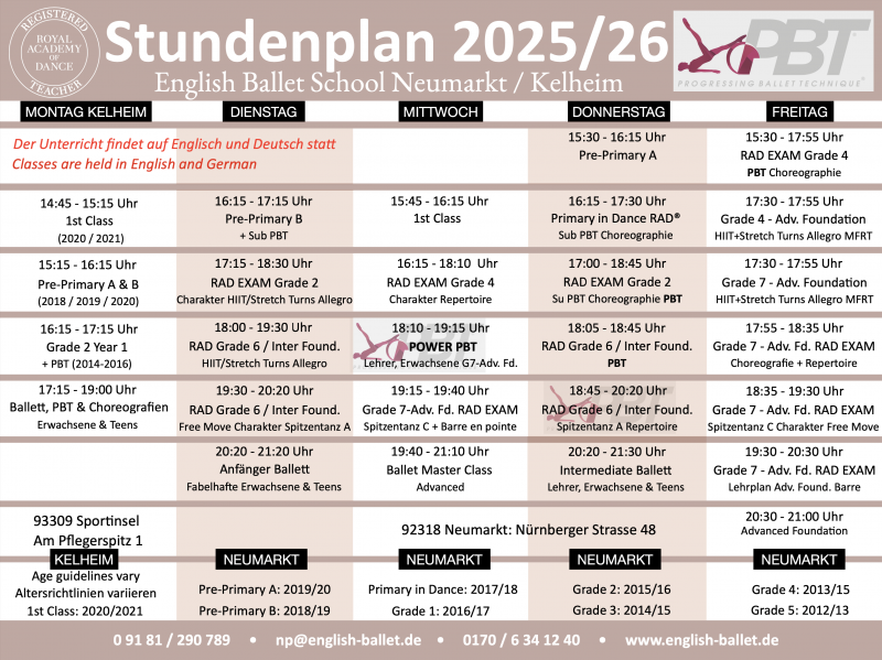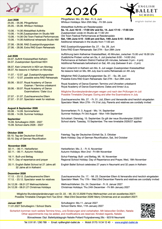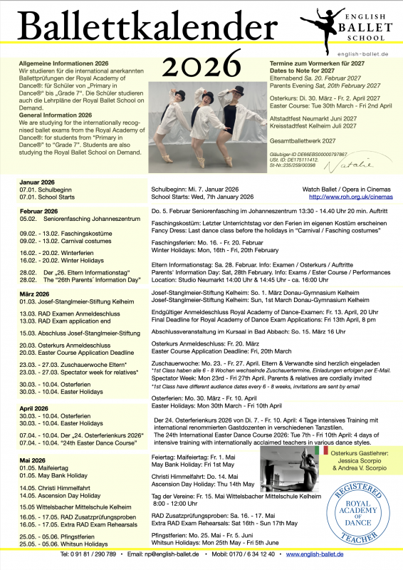 Timetable 2026 2026 Ballettkalender 2026